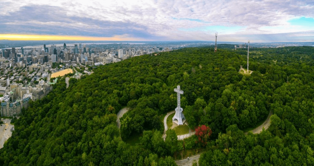 En observant cette merveille naturelle, on peut remarquer ses trois sommets et une grande croix métallique de plus de 30 mètres de haut, illuminée la nuit, ajoutant un charme particulier à la ville. Sur les pentes du Mont Royal, un parc a été aménagé dans la seconde moitié du XIXe siècle. C’est l’un des lieux de détente préférés des habitants.