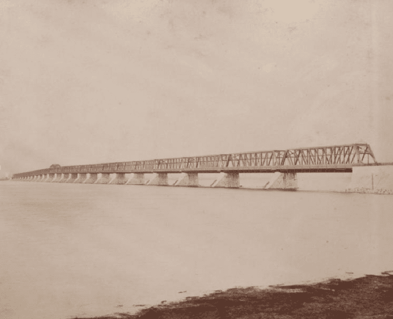 En 1854, la compagnie Grand Trunk acheva la construction d’un premier pont reliant Vaudreuil à Sainte-Anne-de-Bellevue via l’île Perrot. Une fois la rivière des Outaouais traversée, la compagnie lança un projet audacieux : construire l’un des plus longs ponts du monde pour relier directement Montréal à la rive sud.